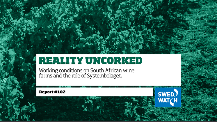 Rapporten “Reality Uncorked: Working conditions on South African wine farms and the role of Systembolaget”, fokuserar på arbetsförhållandena på gårdar inom Sydafrikas vinindustri och lyfter fram kränkningar av arbetarnas rättigheter samt rollen för statligt ägda Systembolaget när det gäller att ta ansvar för förhållanden i sin leverantörskedja. Sydafrika är en stor leverantör av viner på den globala marknaden och står för 8-9 procent av Systembolagets vinförsäljning.