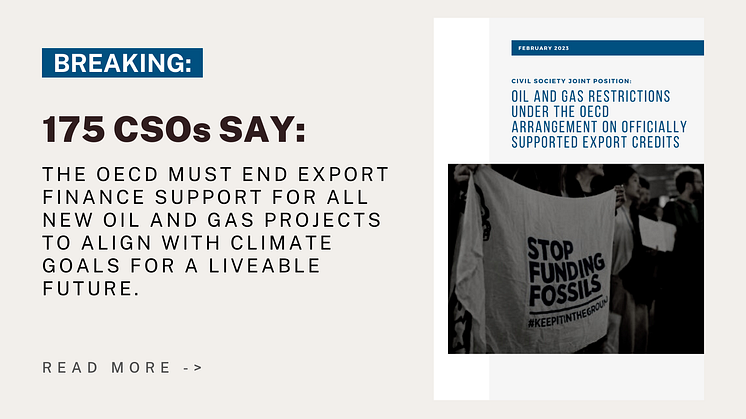 One week before international negotiators meet at the Organisation for Economic Co-operation and Development (OECD) in Paris to discuss aligning export finance with international climate goals, Swedwatch together with more than 175 civil society organizations (CSOs) from over 45 countries have released a Joint Position calling on world leaders to end OECD export finance for oil and gas.